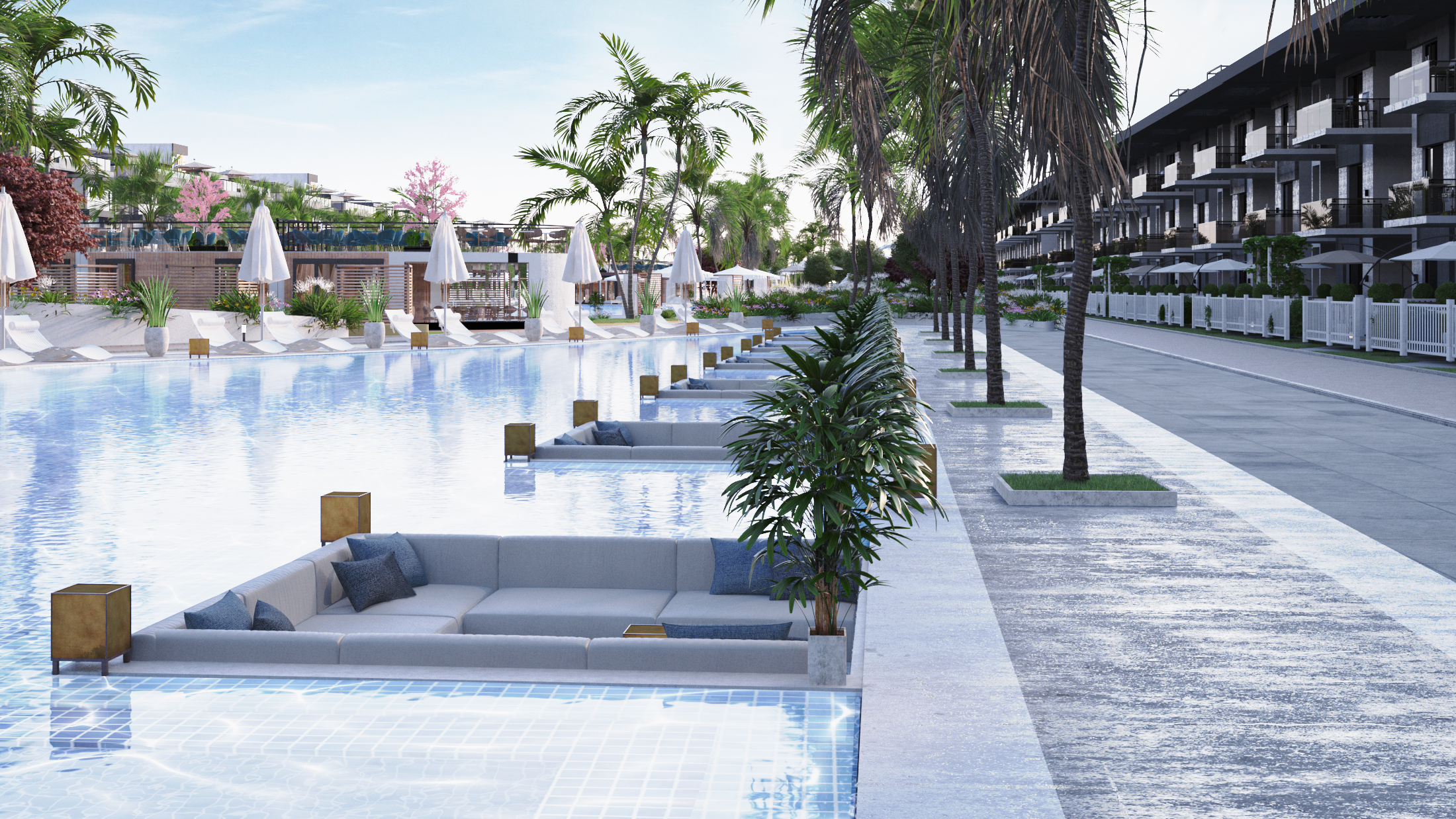كما تم انشاء قرية G-BAY العين السخنة على مساحة 27 فدان يضم سلسلة مختلفة من الشاليهات المختلفة التى تختلف فى المساحات و الاسعار حيث يتوفر شاليهات مكونة من غرفة نوم و غرفتين نوم و ثلاث غرف نوم جميعها متشطبة بالكامل بالتكيبفات و المطبخ بالكامل ، كما تشغل المساحات الخضراء و اللاند سكيب الأغلبية العظمى من المساحة الإجمالية للمنتجع بالكامل و منطقة الخدمات الترفيهية التى جعلت من تلك القرية مدينة سياحية متكاملة